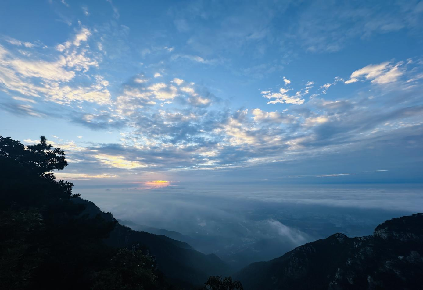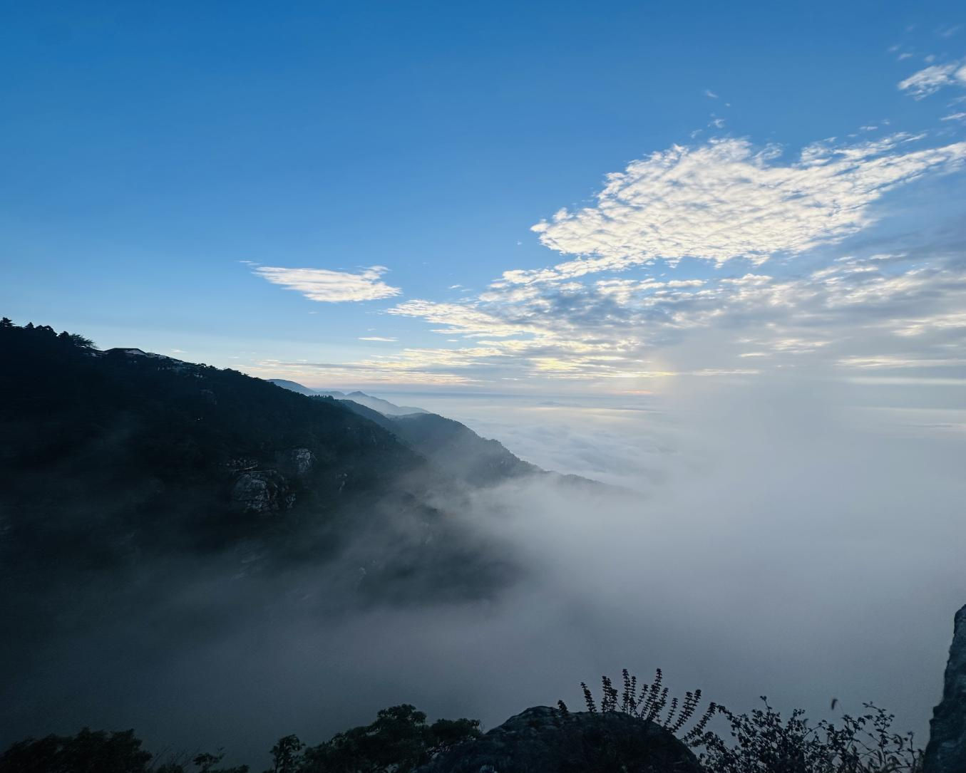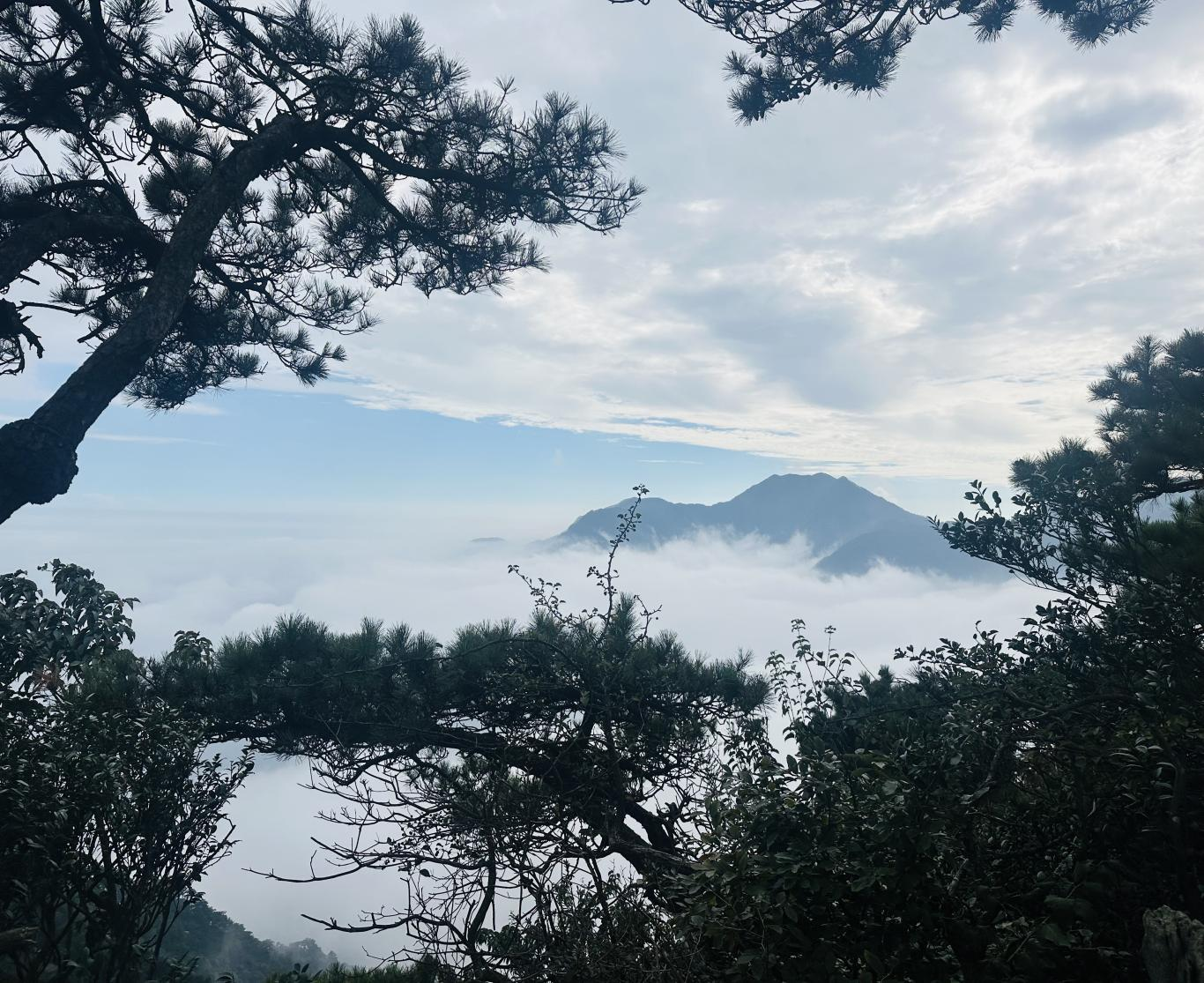 一早随人流奔赴含鄱口。山风清冽,夜色未褪,可心中满是期待。待东方泛起鱼肚白,云海如潮水般在山谷间翻涌,远处的山峦在云雾中若隐若现,似是水墨画卷里的留白。