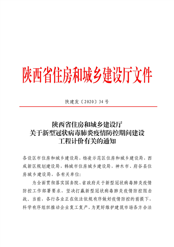 转-关于新型冠状病毒肺炎疫情防控期间建设工程计价有关的通知