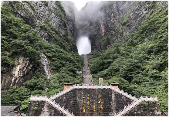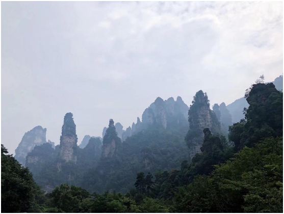 我们来到了非常著名的武陵源风景区。武陵源独特的石英砂岩峰林在国内外均属罕见,素有“奇峰三千”之称。峰林造型奇特,变化万千,这些突兀的岩壁峰石,连绵万顷。大家都惊叹于大自然的奇妙之处。
