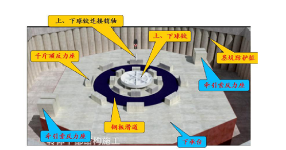 上跨铁路桥梁为跨径(84+152+84)m连续箱梁,其中3#墩、4#墩为主墩,且3#墩邻近既有侯西铁路为转体主墩。邻近既有侯西铁路下行线,最少水平距离仅有3米。3#墩身上部主桥连续箱梁为(75+75)m的T构,先采用平行于既有铁路外封闭网挂篮对称悬臂现浇法施工,施工成形后拆除挂篮,按总体顺时针转体 45度上跨侯西铁路,与侯西铁路线交角45度,转体总重量为25000t。各项技术要求十分严格。